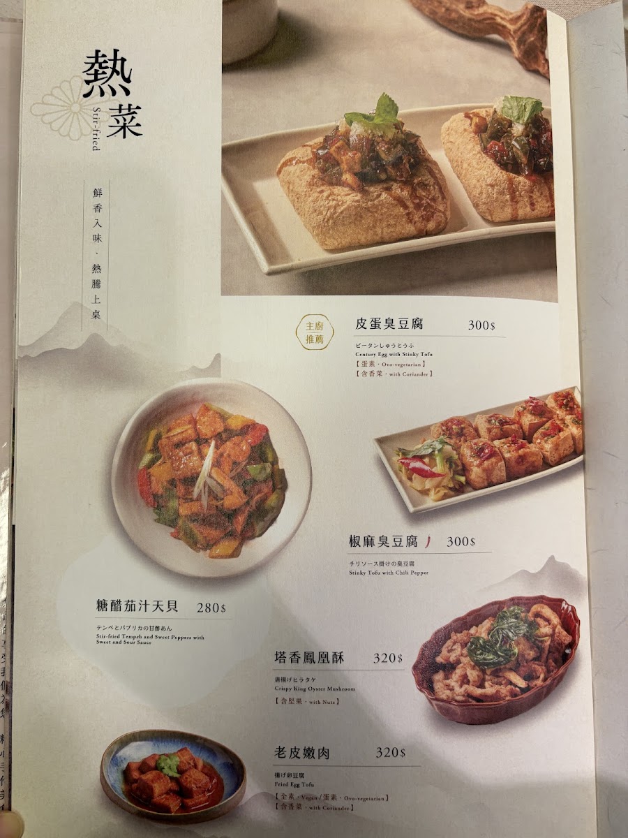 Really good flavorful vegetarian food! But I would skip the red oil dumpling and gung bao G ding. The runny egg dish (forgot what it’s called) and old tea tofu was exceptionally good! Would definitely come back next time in Taipei. One downside was we were not informed of the minimum spend per person when making reservation.
